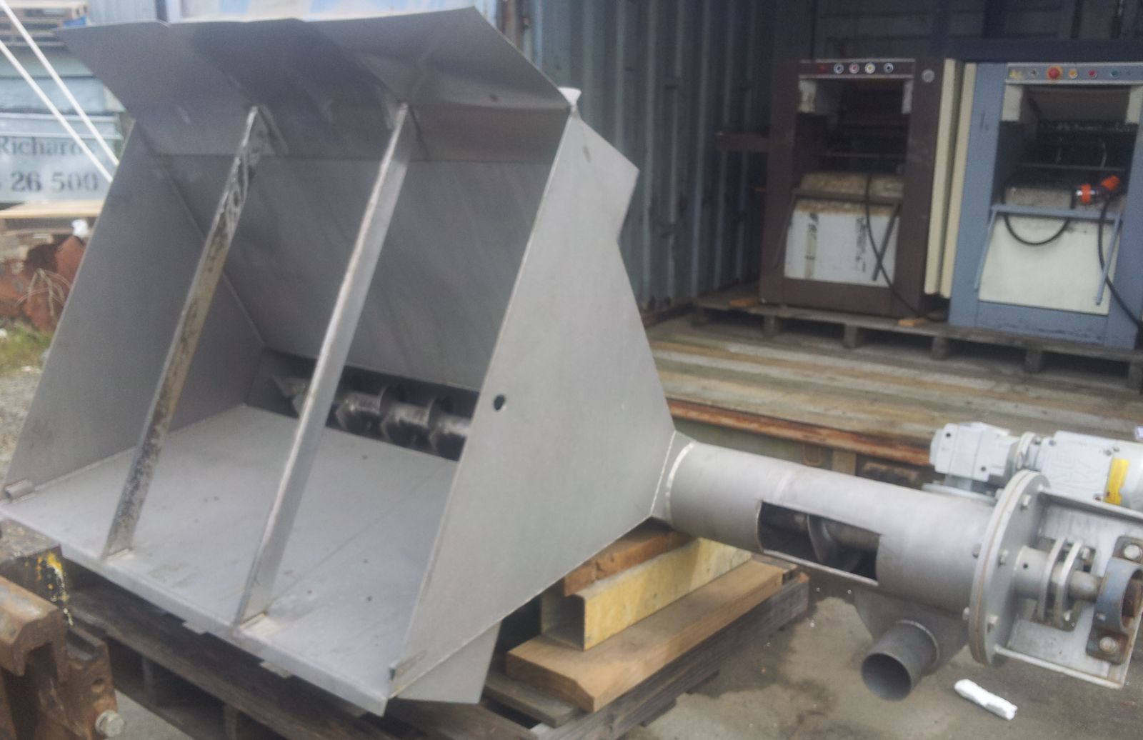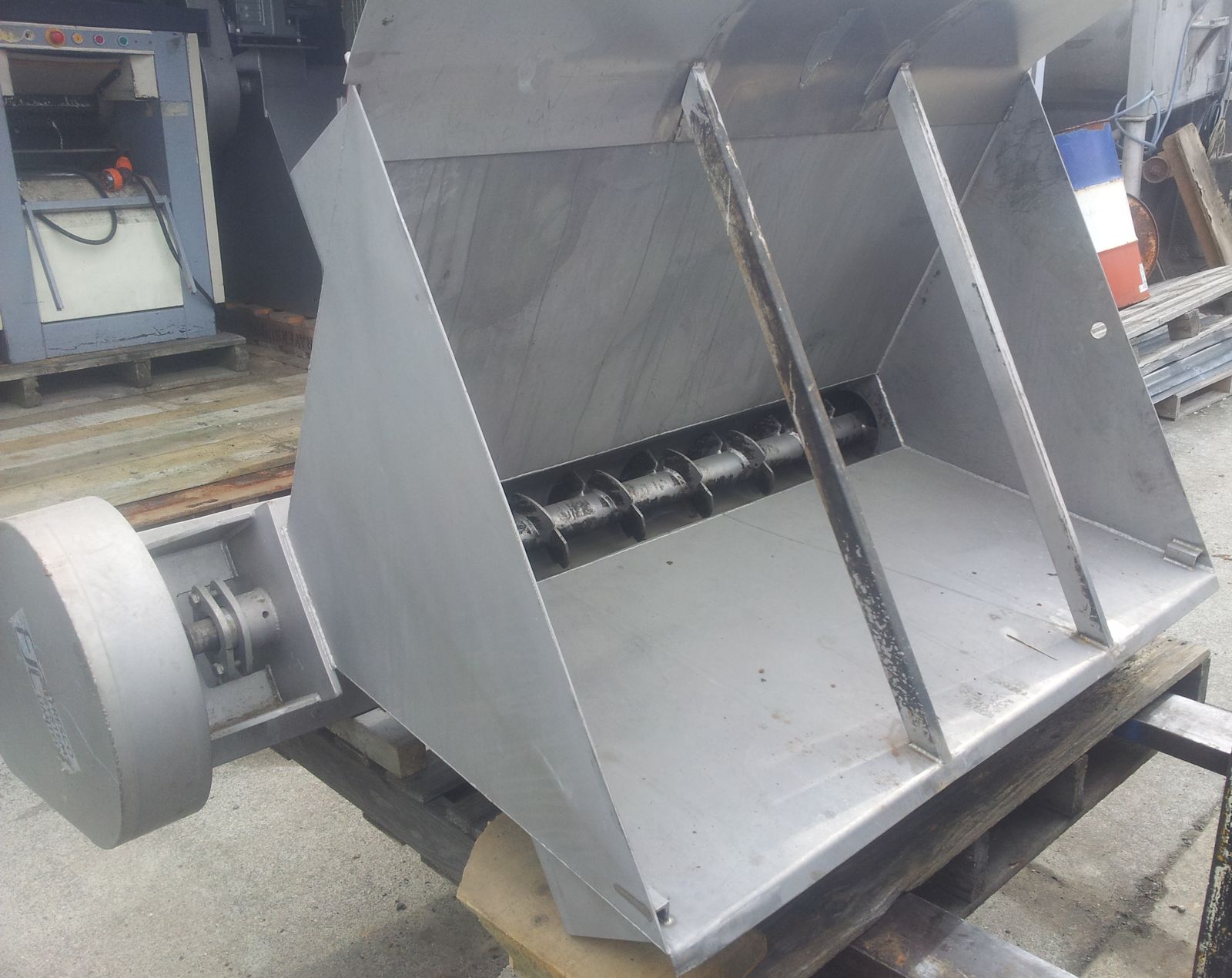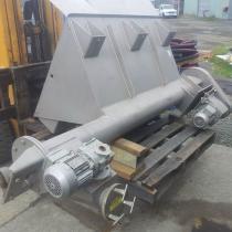 Stainless Steel hopper with full length discharge auger and right angle drive for transfer auger (transfer auger not available)