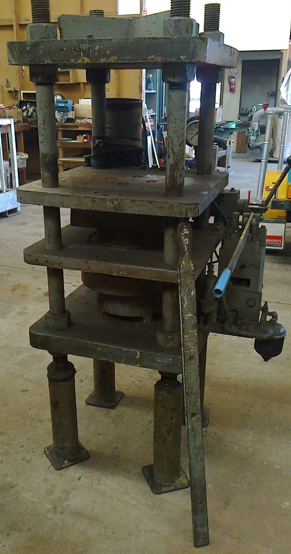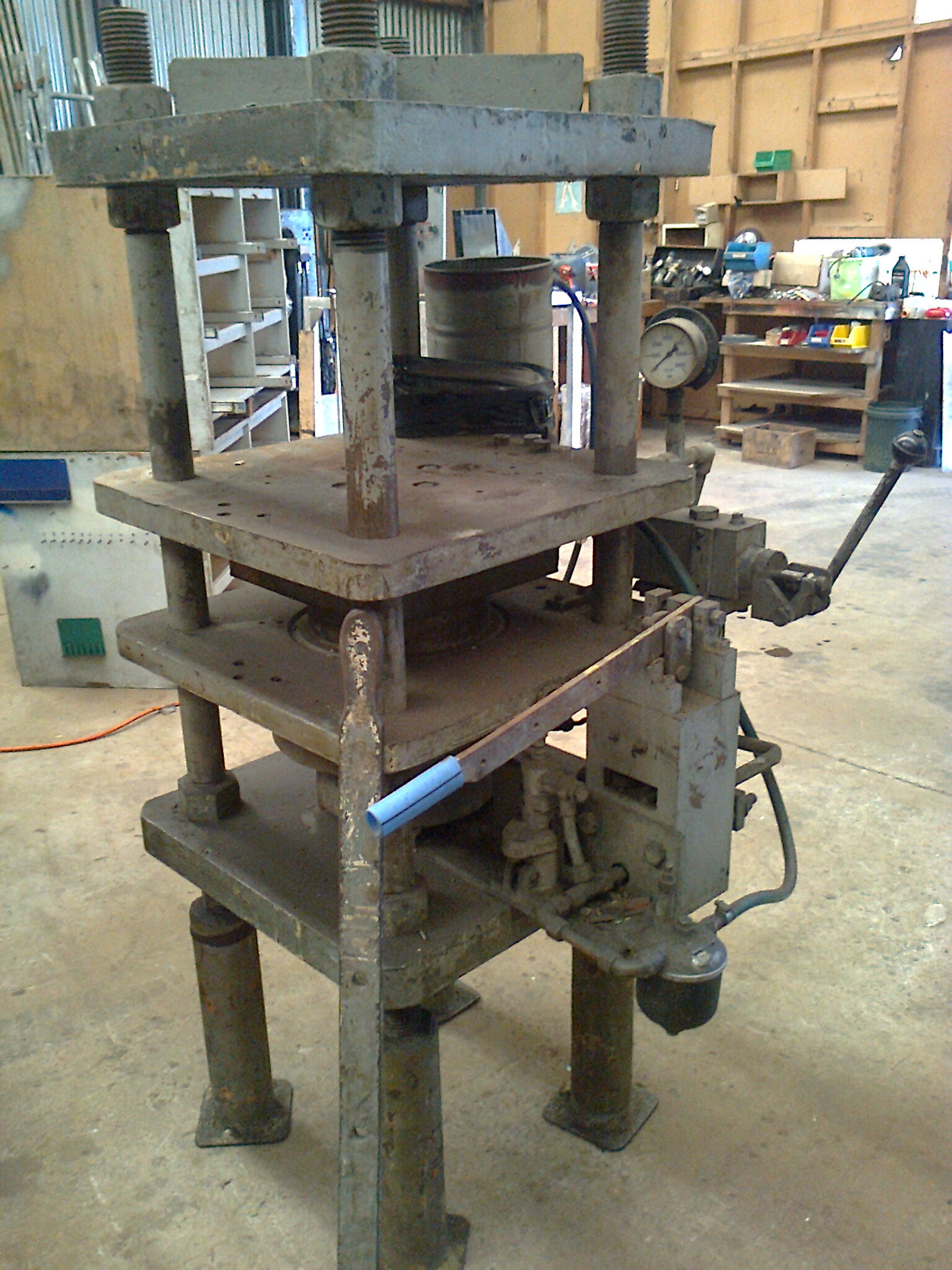 Very solid, high tonnage, platen press.