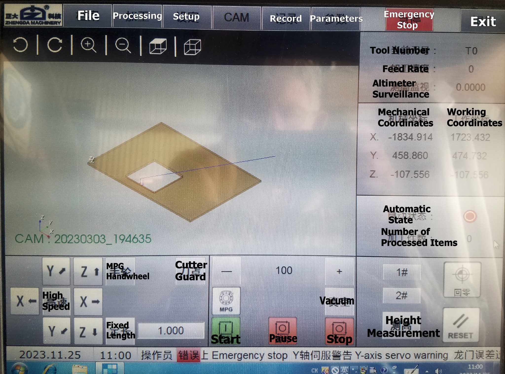 This machine has software issues that I have not been able to fix. It needs a new CNC cutting programme.