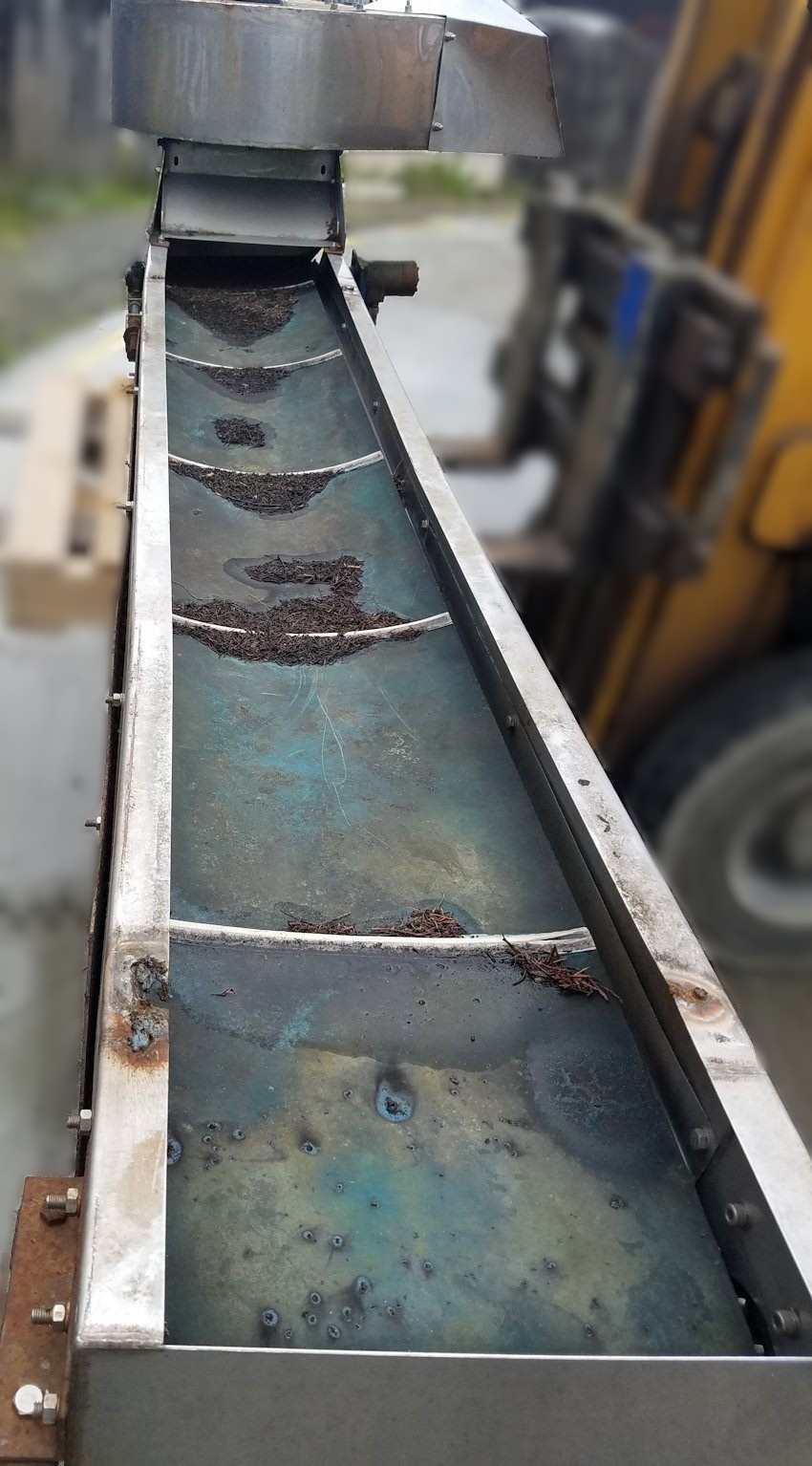 350mm wide conveyor belt driven by hydraulic motor.