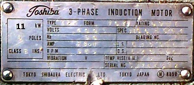 Maker: Toshiba motor - Nachi pump - Made in Japan