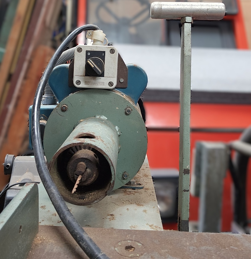 Single head dowel borer with Jacobs cut chuck