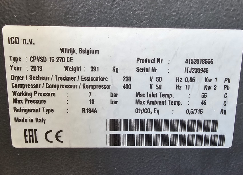 15 Hp CPVSd 15 d (9 - 64 cfm @ 125 psig) variable speed rotary compressor