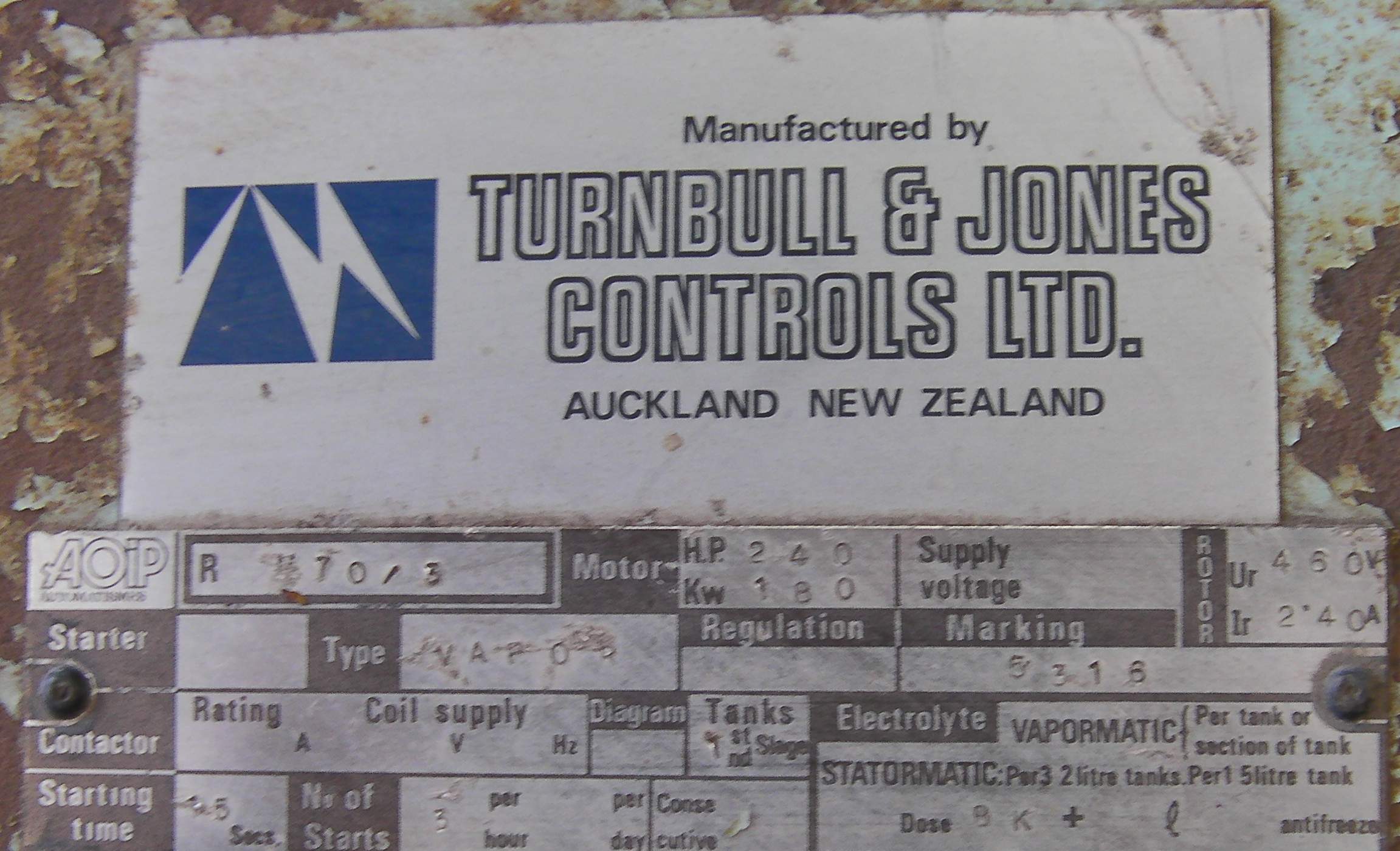 Used on a 240hp air compressor motor.